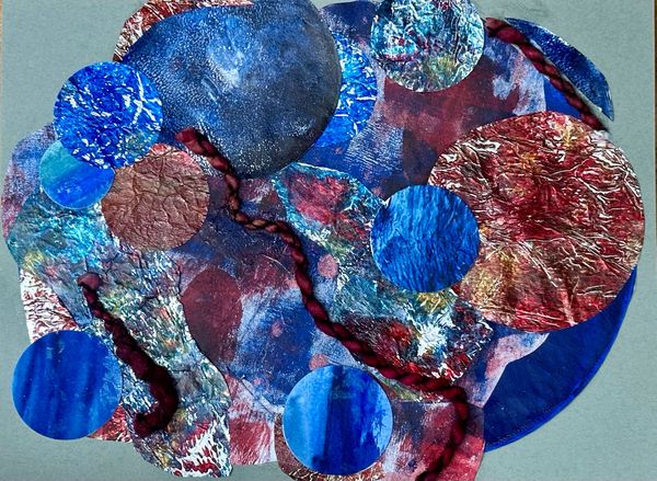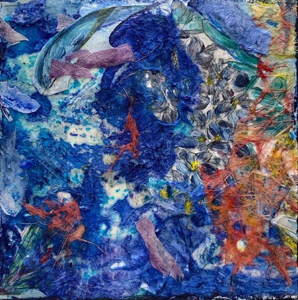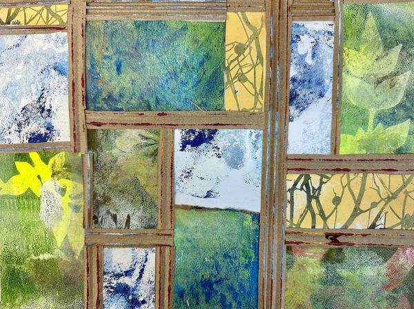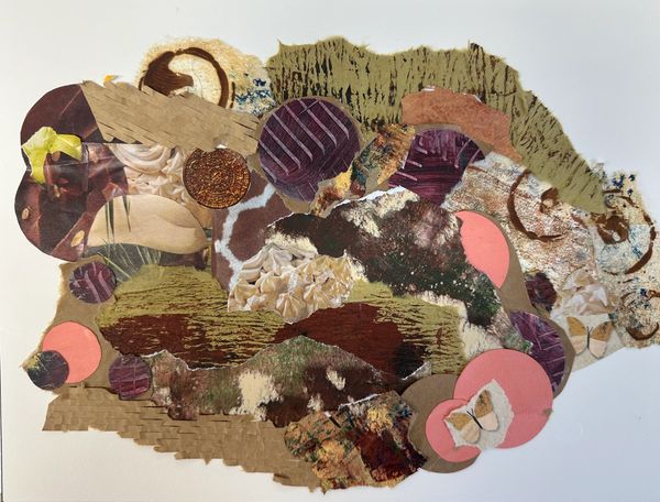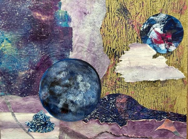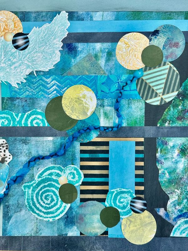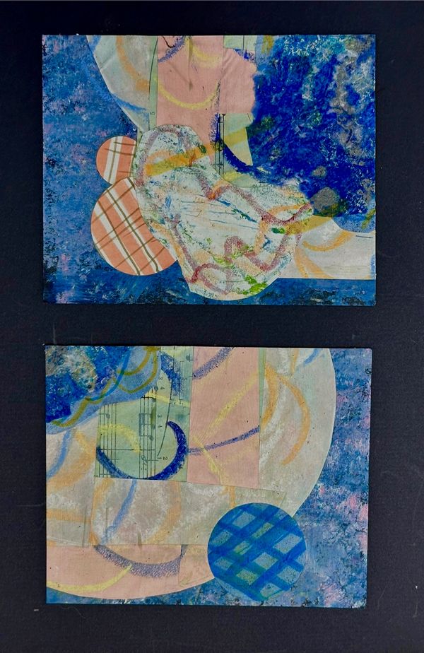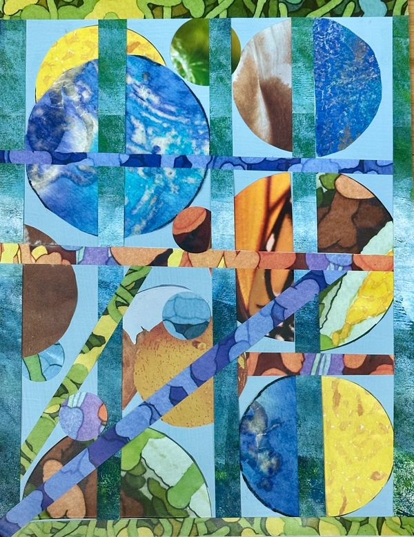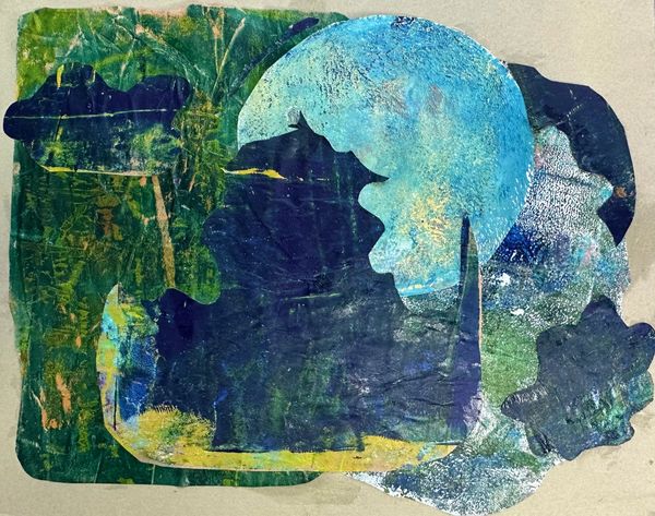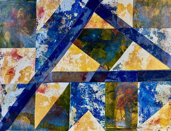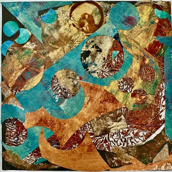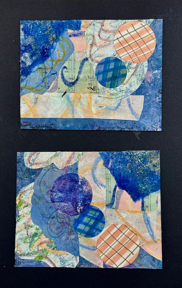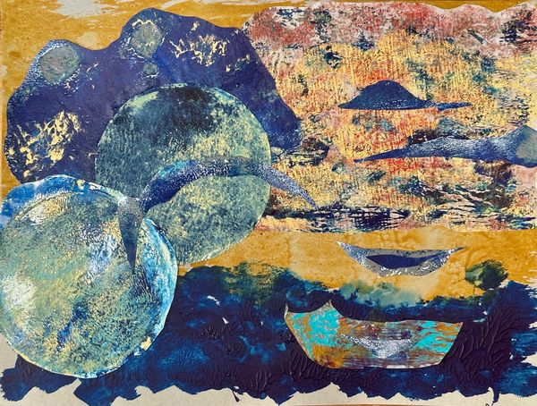 After a hiatus of nearly twenty years, I recently returned to collaging. I now mainly use papers I have textured and colored myself, but I also incorporate pieces of my old gouache and pastel paintings and intaglio prints.
