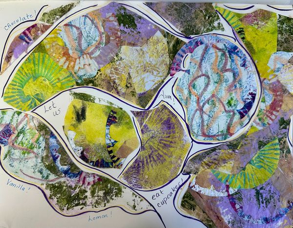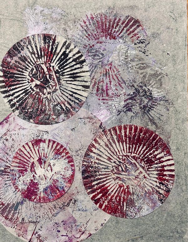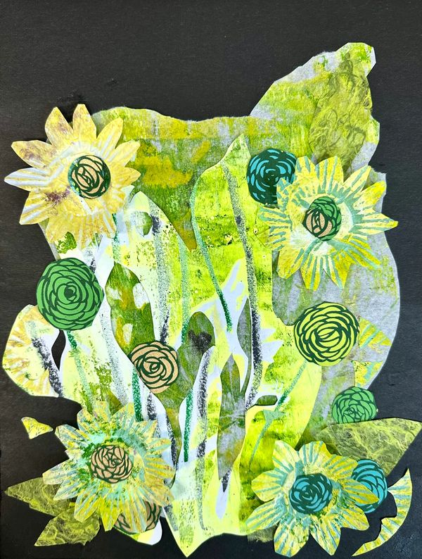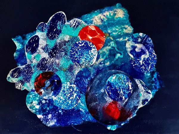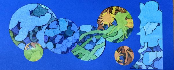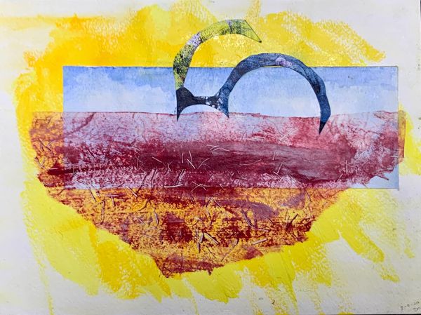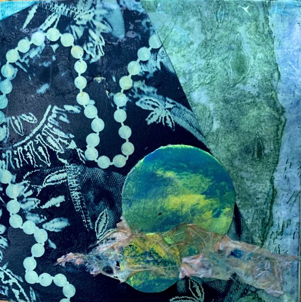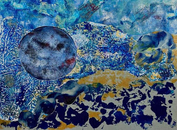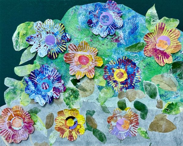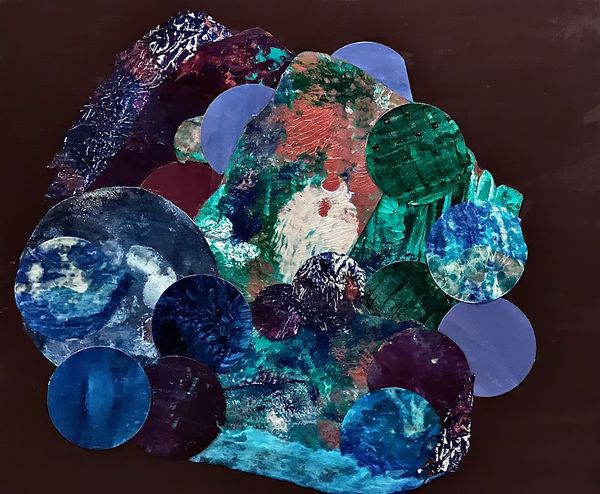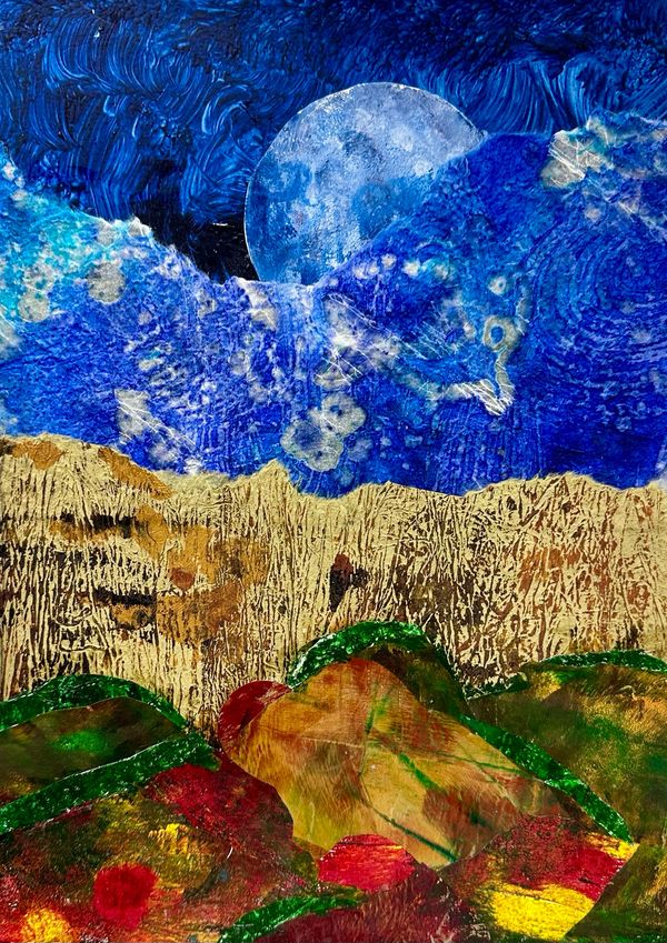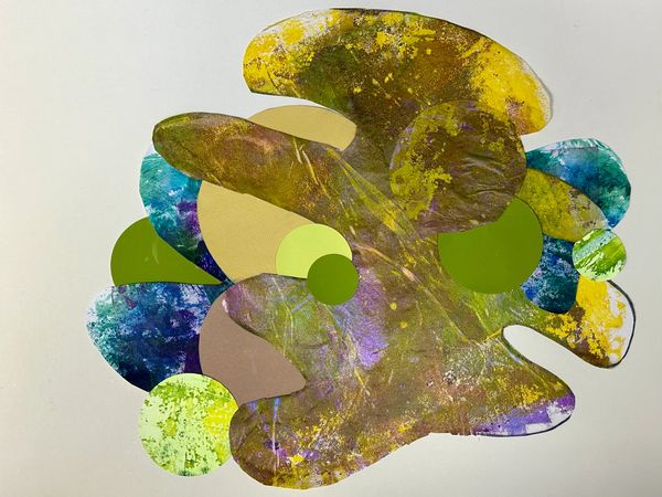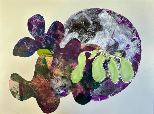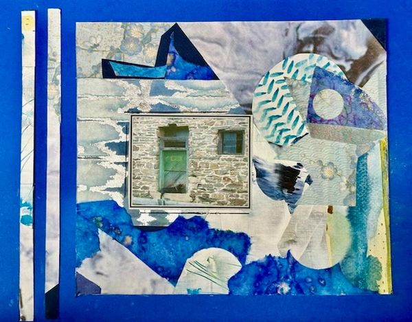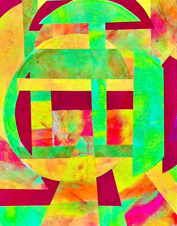 After a hiatus of nearly twenty years, I recently returned to collaging. I now mainly use papers I have textured and colored myself, but I also incorporate pieces of my old gouache and pastel paintings and intaglio prints.